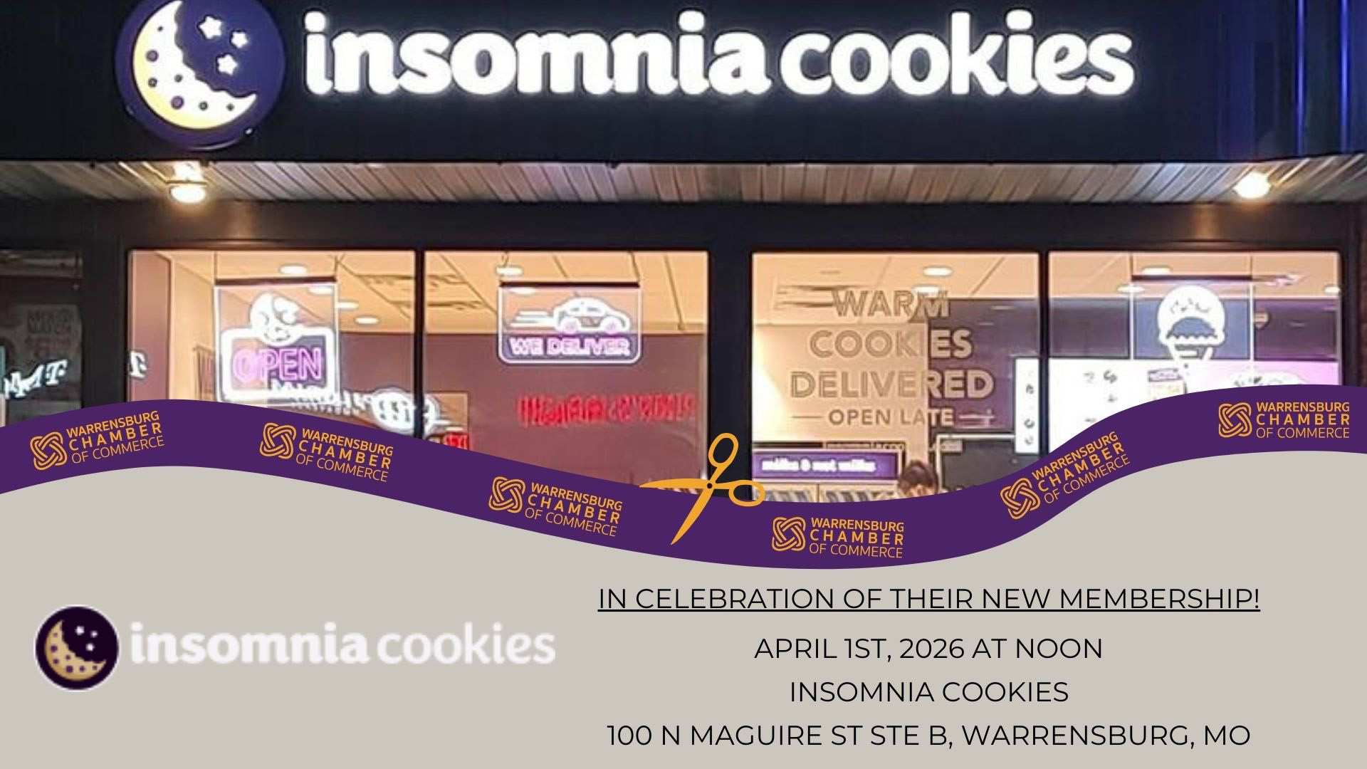 Join us as we celebrate a sweet new addition to the Warrensburg business community! The Warrensburg Chamber of Commerce is proud to host a Ribbon Cutting Ceremony for Insomnia Cookies...